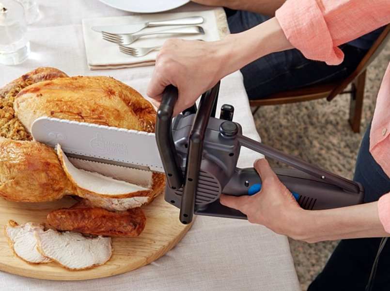 Carve like a lumberjack, even if you’ve never held a chainsaw. The Mighty Carver turns your family dinner into a full-blown action scene